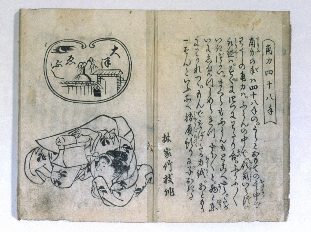 | 注記 | 大坂藤屋九兵衛板。○角力四十八手(林屋竹板作) ○門づくし(都亀蝶作・林屋竹枝調) ○長しみぢかし(延寿軒正翁作) ○物の言様ときゝやう(川水坪のふた作) ○鳥のやうで鳥でない物(笑福亭勢楽作・笑福亭勢柳調) ○いたいやうでいとない物(千賀の家作・笑福亭吾笑調) ○太平楽(えらそふな)(浪花亭礒門作・笑福亭勢楽調) ○未の年(林屋竹枝作) ○うれしがり(近の家磯虎作・中村友三調) ○梅忠(延寿軒正翁作) ○八方一人リ言 ○いろづくし(桂文楽作) ○嘉づくし |